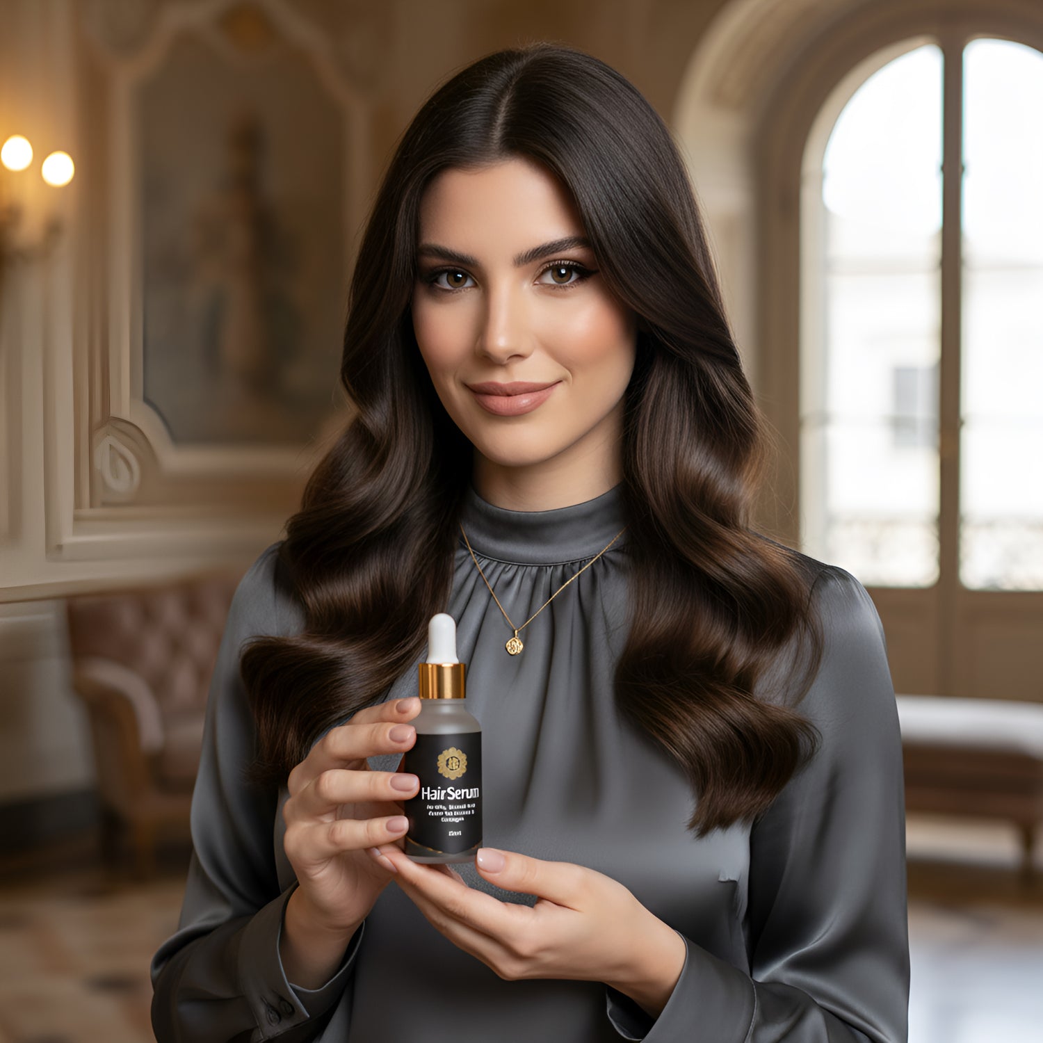 Our Hair Serum is designed to give you salon-smooth, glossy waves just like in the picture. Lightweight and nourishing, it tames frizz, adds shine, and keeps your hair looking flawless all day.